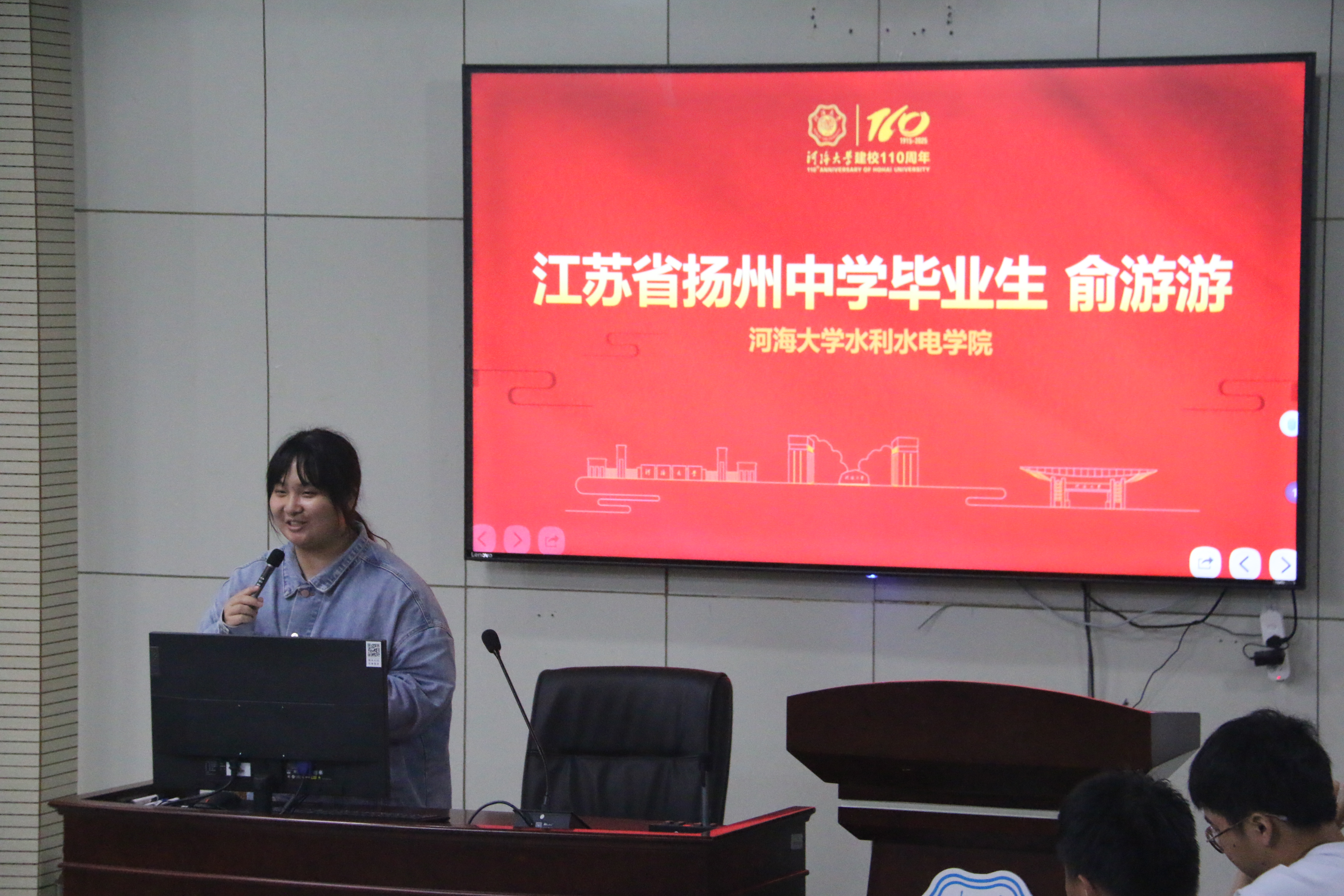 扬州,因水而兴,一座与大运河血脉相连的历史文化名城。来自扬州地区的新生们,自幼便受水文化的熏陶,对水利工程有着独特的亲切感与理解力。本次座谈会邀请了扬州籍的陈梓萌、赵馨、俞游游、朱雨馨四位学姐亲临现场,围绕“学习、竞赛、社会实践、生活”等主题,为同乡学弟学妹们倾囊相授。她们鼓励新生积极进取,勇于面对挑战,在探索未知的道路上学会坚持,并最终“悦纳自己、接受自己、成为自己”,书写丰富而出彩的大学篇章。