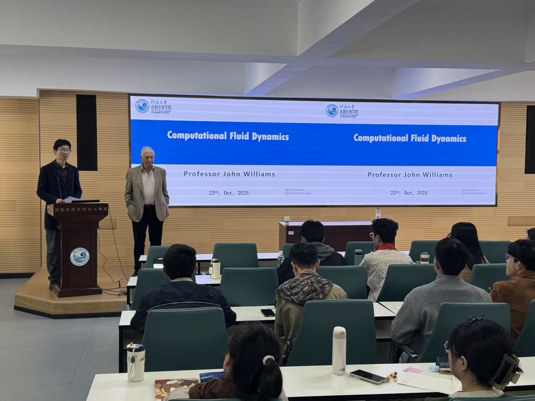 10月23日上午,英国伦敦大学玛丽皇后学院Williams教授应水利部水循环与水动力系统重点实验室邀请访问博彩网 ,开展系列学术交流。报告会由博彩网-信用网博彩 许栋教授主持,博彩网 、港口海岸与近海工程学院、海洋学院、力学与材料学院相关老师和学生参加交流。Williams教授应邀做了题目为“Computational Fluid Dynamics: the Basics with Applications”的学术报告。报告会主要介绍了计算流体力学的基本原理,控制方程特征和数值求解方法,受到参会老师和同学的热烈欢迎。