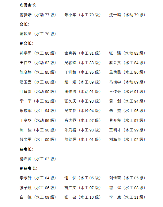 经博彩网-信用网博彩 酝酿推荐,水电校友会广泛征求意见,河海大学校友会审核并推荐水电校友会第一届理事会成员,名单如下。
