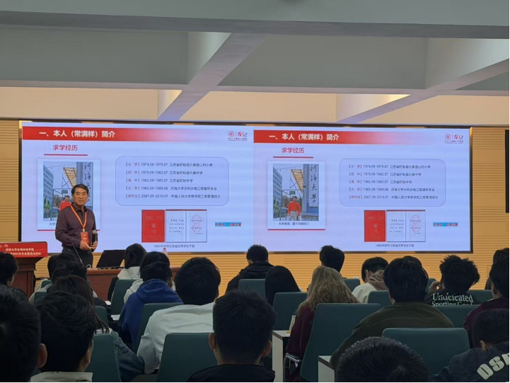 报告伊始,常董事长深情回顾了自己的求学经历与职业生涯,并系统阐述了新时代青年成长成才的关键要素。他通过荷花定律、金蝉定律、竹子定律“三大成功定律”阐释坚持与积累的重要性,并强调一要扎根基层、厚积薄发、持续学习、精准提升,建立以用为本的知识体系;二要注重情商培养,不断提升自我认知与情绪管理能力,在工作中养成创造性执行力与务实肯干的作风,在团队中体现团结协作精神与成人达己的胸怀;三要德才兼备、勇于担当,时刻坚持以德为先的根本原则,以“扛事、扛雷、扛责”的格局开拓自身成长空间。同时他勉励同学们常怀家国情怀,做到爱国、爱家,把个人理想融入国家发展和民族复兴的伟大实践之中。