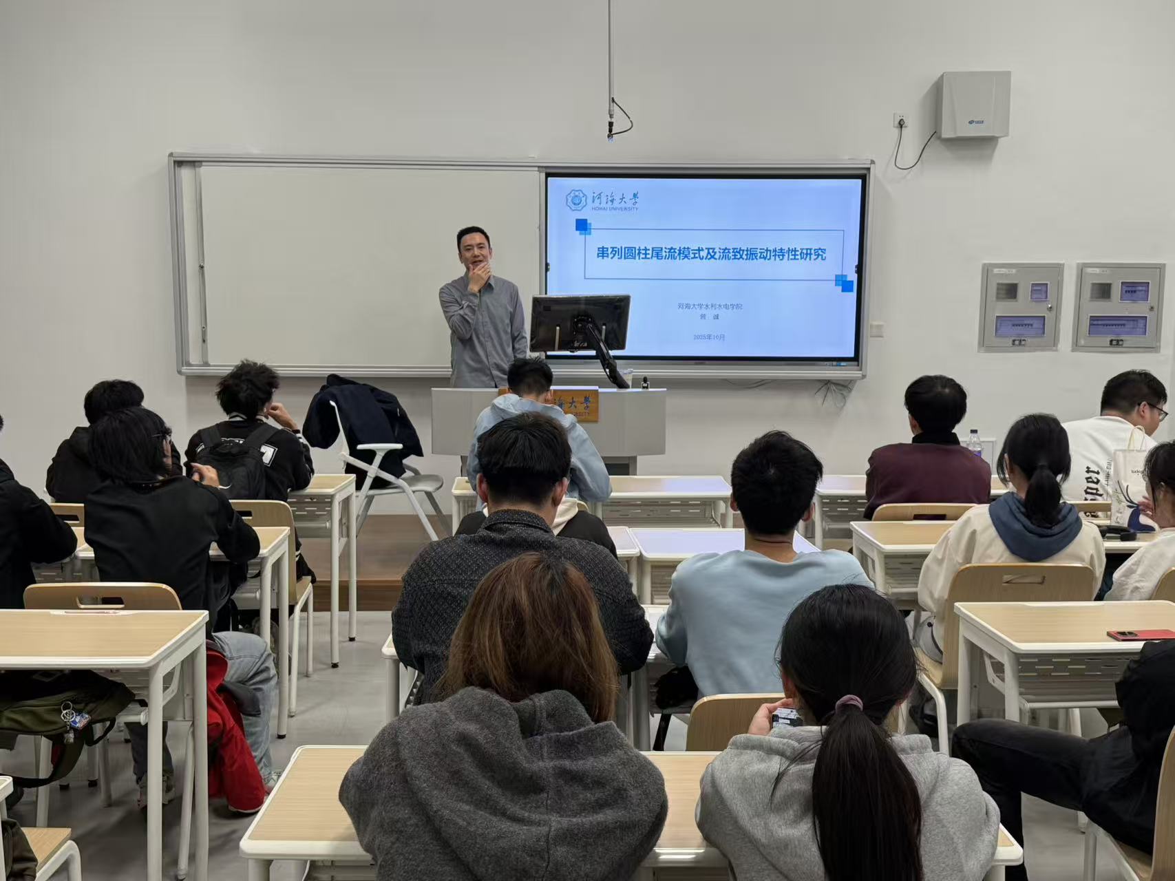 近日,博彩网 “水趣课堂”系列讲座在常州校区2号楼C区C101顺利举办,本次讲座特邀博彩网 曾诚副教授担任主讲,为2024级本科生带来题为《串列圆柱尾流模式及流致振动特性研究》的精彩学术报告。