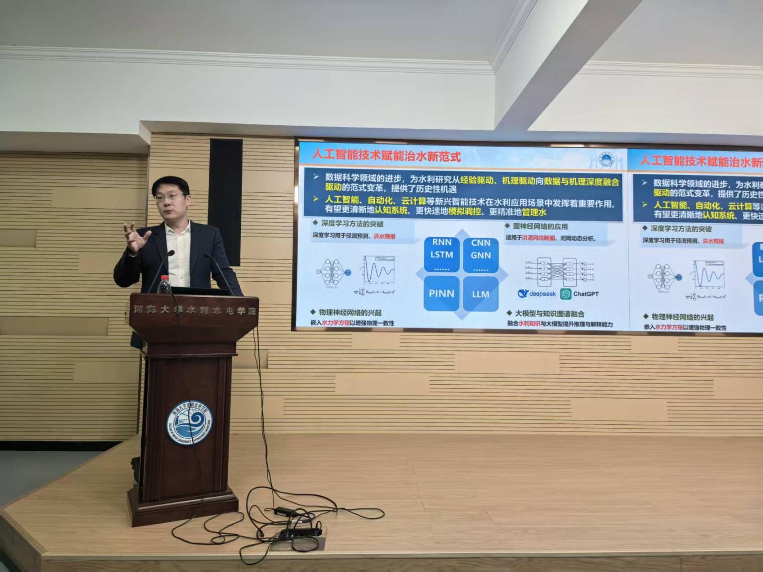2025年11月13日下午,学院智慧水利与安全研究所在水电馆301会议室成功召开学术研讨会。华南理工大学刘思源教授针对智慧水利的理论、技术与应用作了核心汇报,学院众多师生参加了本次研讨会,共同探讨智能AI技术在水利领域的创新及应用,会议由智慧水利与安全研究所所长蒋晟教授主持。本次会议旨在全面梳理智慧水利发展现状,明确智慧水利建设顺应数字治水新格局,以数字孪生、智能体和智能装备的一体化研发来支撑流域防洪、水资源管理与调配,从而实现“预报、预警、预演、预案”功能,以期形成水工程—环境—人的闭环。