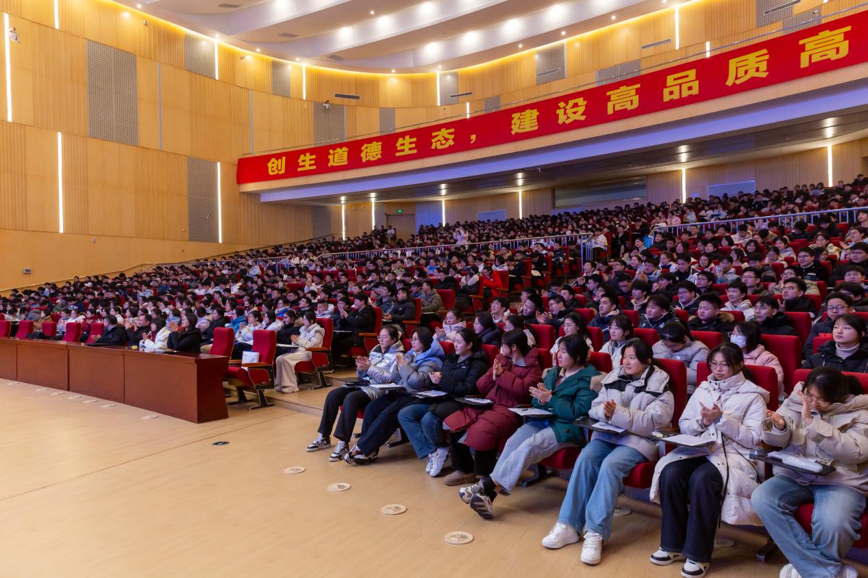 为搭建优质生源培养桥梁,推动“双高”协同育人提质增效,1月25日,河海大学副校长宋翔洲、学生处处长王方、博彩网 副院长俞晓东、党委副书记戴媛媛等一行赴江苏省邗江中学开展河海大学金课进校园活动暨“双高共建”座谈会。江苏省邗江中学副校长陈军、高三年级主任、班主任等师生1200余人共同参加。